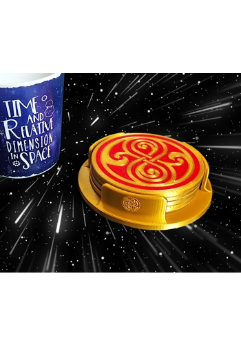 Complete your Doctor Who collection with this stunning set of 4 off, 3-D printed Doctor Who coasters and holder. These coasters bare the Gallifrey Seal of Rassilon in Red and Gold silk filament to give that metallic sheen and the base has the seal embossed in the sides. Certain to impress your fellow Whovians when they come for a brew or when you relax and have a drink while admiring your Whovian collection.