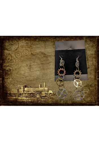 Bronze, Silver & Brass effect Cog Steampunk Earrings. These are for pierced ears and come on hook wires for fitting.